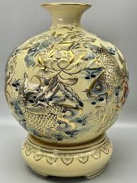 Đây là dòng bình gốm trang trí phòng khách được ưa chuộng nhất nhờ vẻ đẹp hoài cổ. Lớp men rạn giả cổ kết hợp với họa tiết đắp nổi tạo nên sự uy nghiêm, bề thế.